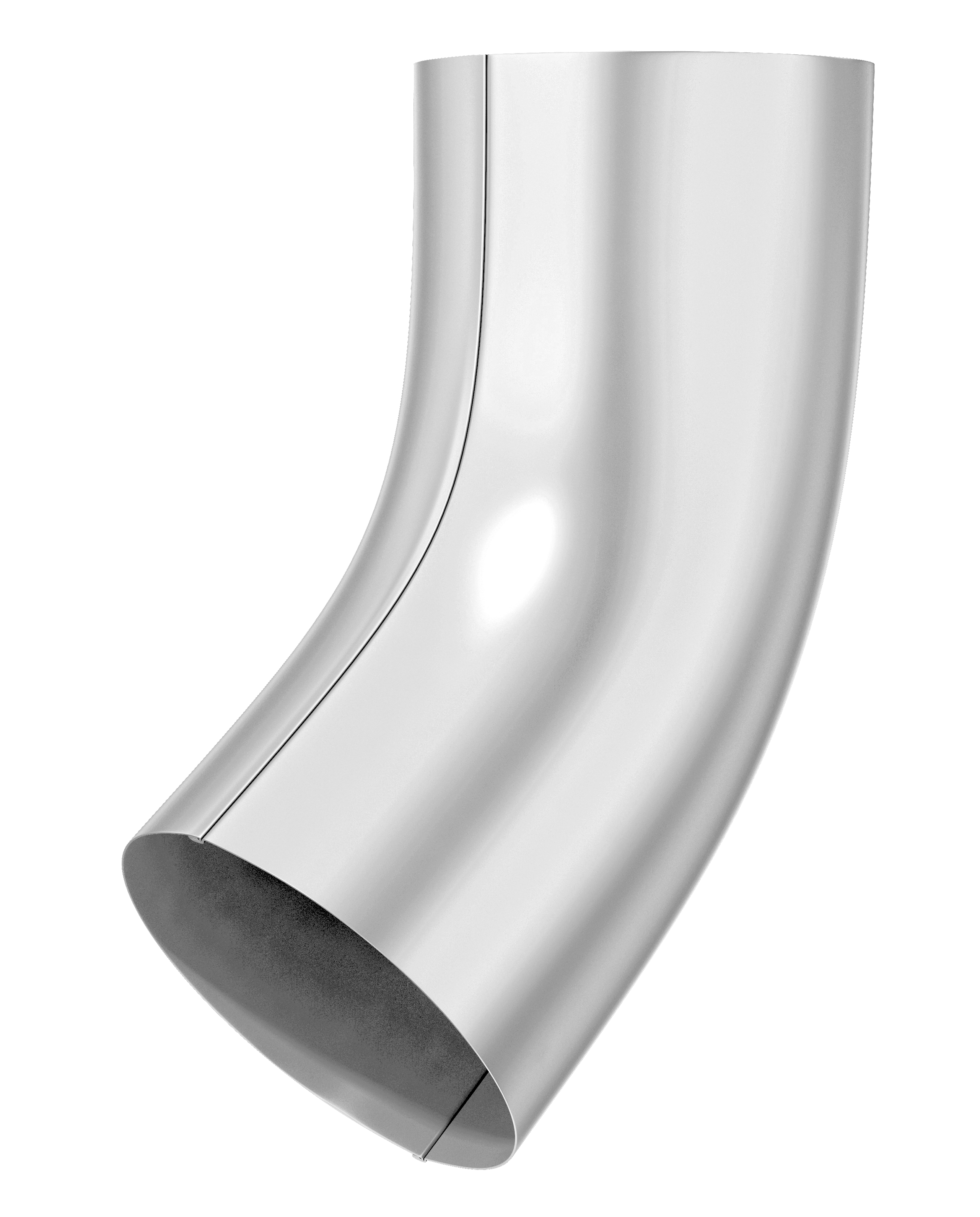 Колено трубы 55" ф90мм. В зависимости от вылета карнизного свеса обеспечивает герметичный переход от воронки к трубе. Позволяет обойти выступающие врагменты фасада здания. Изготовлено из оцинкованной стали (Zn I класс).