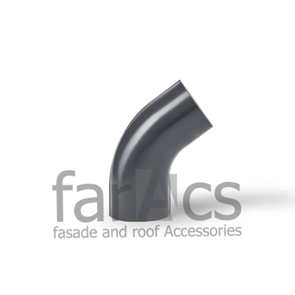 В зависимости от вылета карнизного свеса обеспечивает герметичный переход от воронки к трубе. Позволяет обойти выступающие фрагменты фасада здания. Изготовлено из оцинкованной стали (Zn I класс) с односторонним полимерным покрытием 25 мкм. Металлическая водосточная система FarAcs изготавливается из высококачественной российской стали толщиной 0,52мм с наивысшим, первым, классом цинкования. На элементы системы нанесено защитно-декоративное полимерное покрытие, разработанное специально для водосточных систем. Желоб имеет увеличенную глубину, что обеспечивает повышенную пропускную способность по сравнению с аналогичными водосточными системами с диаметром желоба 125 мм.