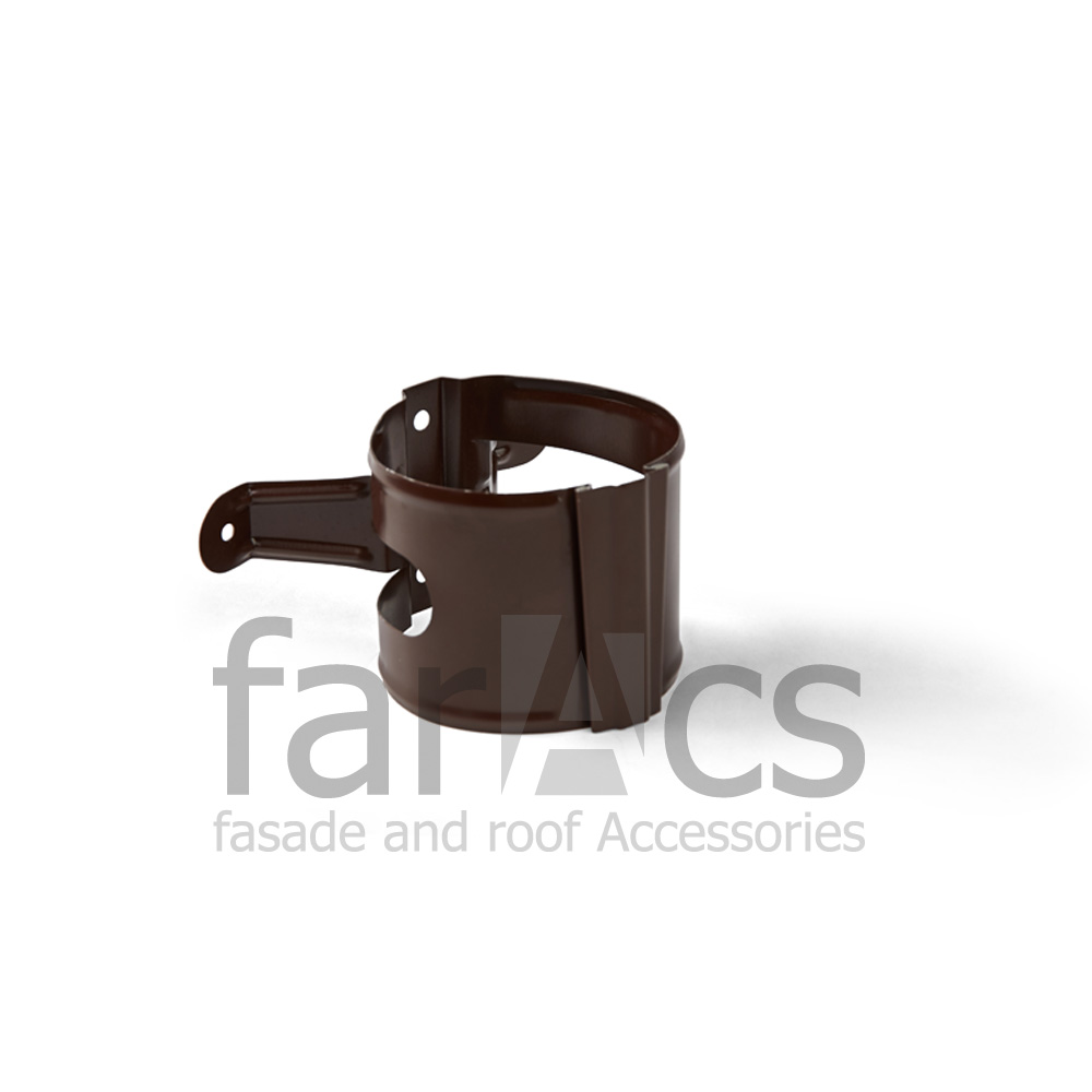 Предназначен для фиксации водосточной трубы к фасаду здания. Применяется на деревянных, вентилируемых фасадах и фасадах из сайдинга. В комплект входит хомут, клин, шпилька-шуруп, две гайки. Изготовлен из оцинкованной стали (Zn I класс) с двухсторонним полимерным покрытием 25 мкм. Металлическая водосточная система FarAcs изготавливается из высококачественной российской стали толщиной 0,52мм с наивысшим, первым, классом цинкования. На элементы системы нанесено защитно-декоративное полимерное покрытие, разработанное специально для водосточных систем. Желоб имеет увеличенную глубину, что обеспечивает повышенную пропускную способность по сравнению с аналогичными водосточными системами с диаметром желоба 125 мм.