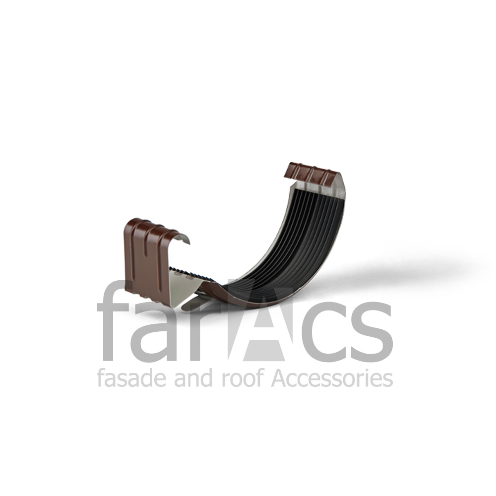 Предназначен для герметичного соединения желобов между собой и с углами желоба. Изготовлен из оцинкованной стали (Zn I класс) с односторонним полимерным покрытием 25 мкм. Комплектуется уплотнителем на клеевой основе. Металлическая водосточная система FarAcs изготавливается из высококачественной российской стали толщиной 0,52мм с наивысшим, первым, классом цинкования. На элементы системы нанесено защитно-декоративное полимерное покрытие, разработанное специально для водосточных систем. Желоб имеет увеличенную глубину, что обеспечивает повышенную пропускную способность по сравнению с аналогичными водосточными системами с диаметром желоба 125 мм.