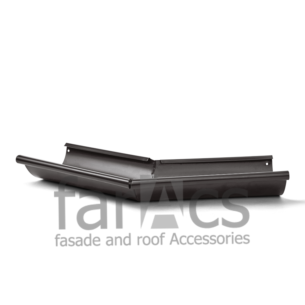 Металлическая водосточная система FarAcs изготавливается из высококачественной российской стали толщиной 0,52мм с наивысшим, первым, классом цинкования. На элементы системы нанесено защитно-декоративное полимерное покрытие, разработанное специально для водосточных систем. Желоб имеет увеличенную глубину, что обеспечивает повышенную пропускную способность по сравнению с аналогичными водосточными системами с диаметром желоба 125 мм.