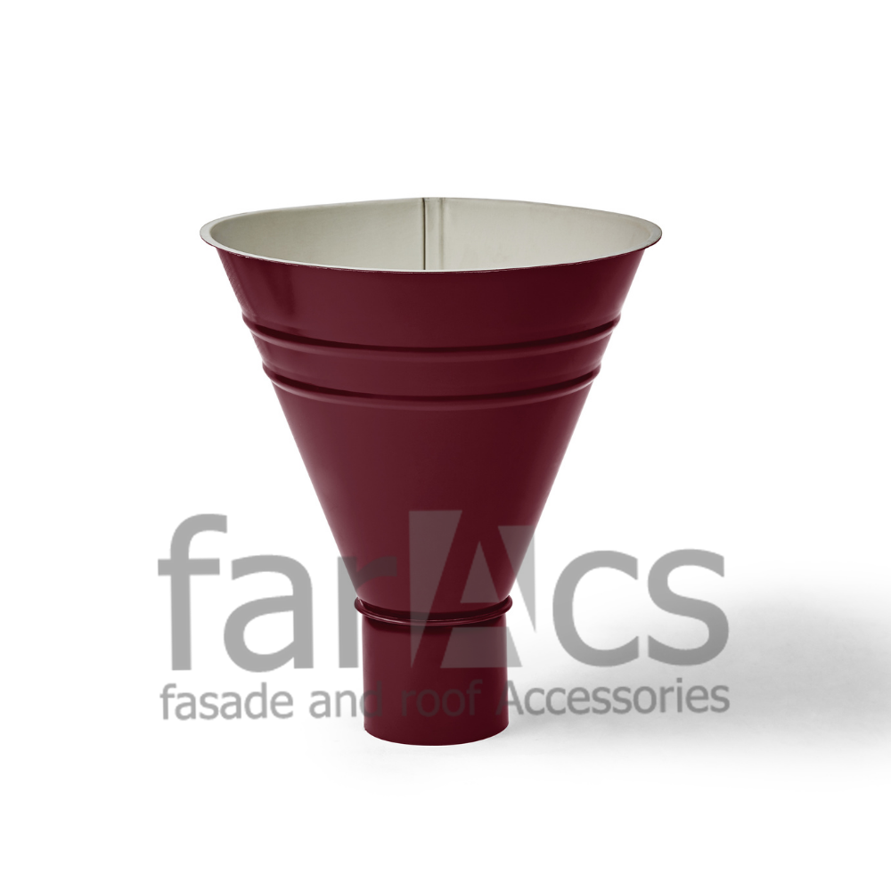 Воронка водосборная предназначена для установки в местах где необходим сбор большого количества воды, напр ендовах, а также в случае использования вместо подвесного водосточного желоба разжелобка.