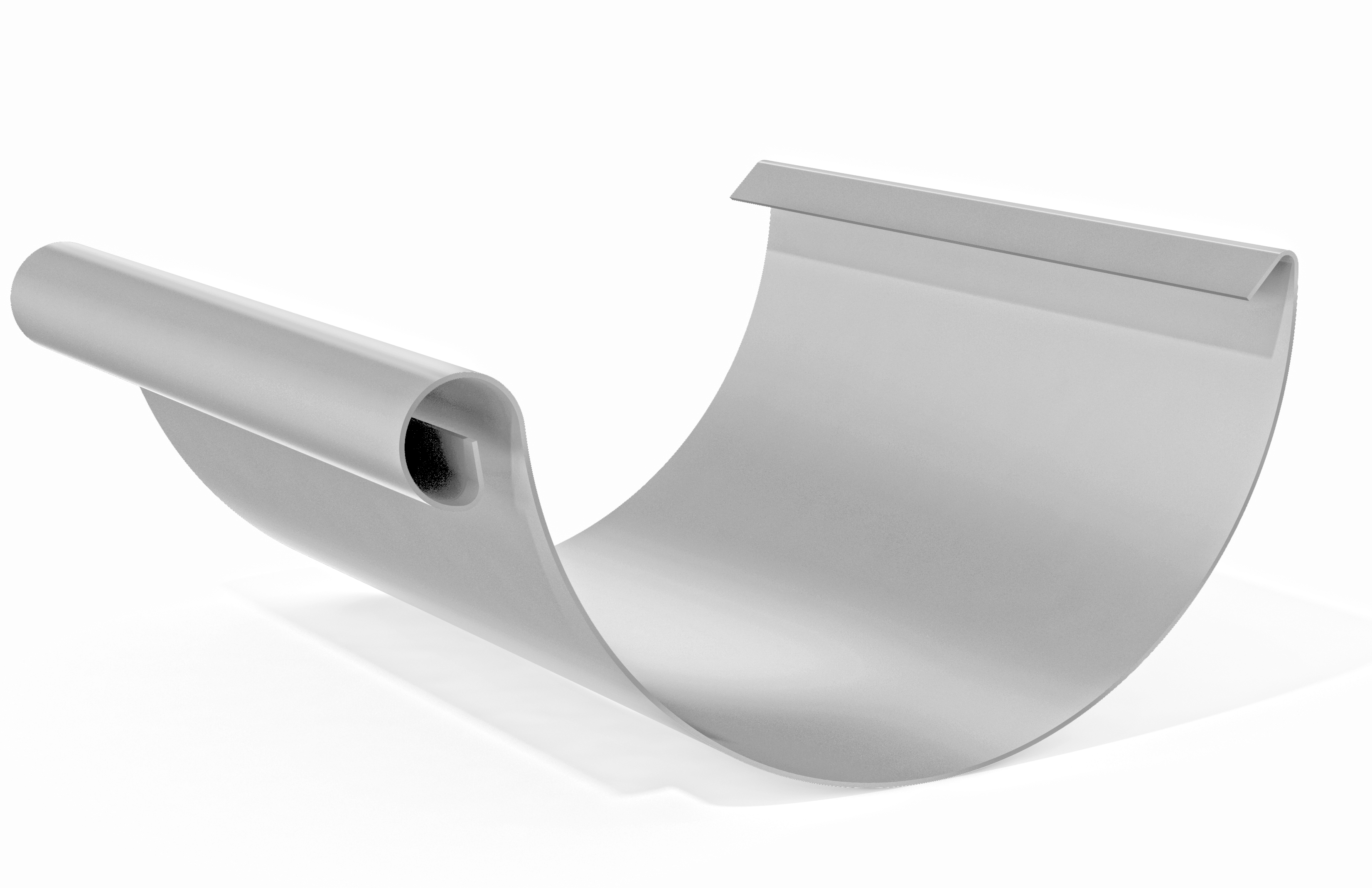 Желоб полукруглый 3000 мм ф125мм. Используется для сбора осадков с кровли и их отвода в водосточную трубу.
