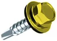 Для скрепления составляющих кровли применяют соответствующие крепёжные изделия. Особая форма наконечника позволяет использовать крепёж без предварительного засверливания, что уменьшает затраты времени и повреждение декоративно-защитного слоя, а благодаря эргономичной форме головки обеспечивается плотное прилегание самореза к материалу. Саморез 4,8х19 RAL1018 (желтый) не подвержен ржавчине, поскольку произведён из оцинкованной стали. С его помощью составляющие кровли будут прочно соединены, а декоративно-защитный слой не подвергнется излишнему повреждению.