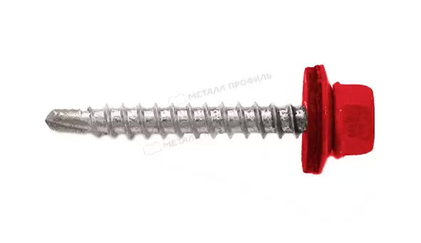 Чтобы соединить части кровли, применяют специальные крепёжные изделия. Особая форма сверла крепежа позволяет использовать самонарезающие винты без предварительного засверливания и разрушения декоративно-защитного покрытия, а эргономичная форма головки обеспечивает плотное примыкание самореза и материала кровли. Саморез 4,8х35 RAL3020 (красная насыщенный) произведён из высокопрочной стали, он не корродирует. С помощью него составляющие кровли будут прочно соединены, а полимерный слой не будет излишне повреждён.