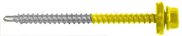 Для соединения элементов кровли применяют специальный крепёж. Саморез 4,8х70 RAL1018 (желтый) не подвержен коррозии, поскольку произведён из высокопрочной стали. С помощью него элементы кровли будут прочно соединены, а полимерное покрытие не будет излишне повреждено. Специфическая форма сверла крепежа позволяет соединять части кровли без предварительного засверливания и повреждения декоративно-защитного покрытия, а эргономичная форма головки обеспечивает плотное прилегание самонарезающего винта к материалу.