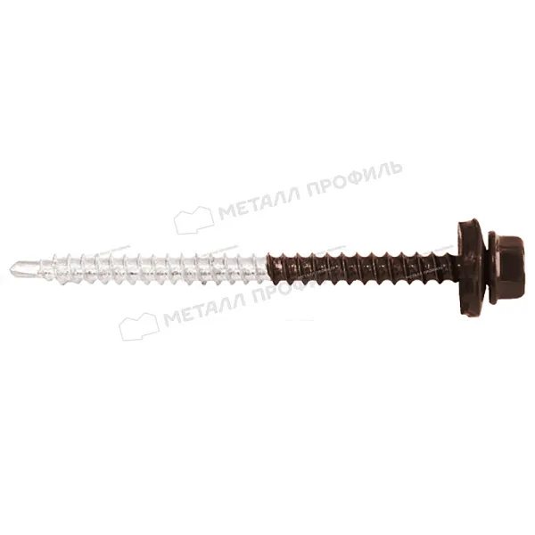 Чтобы соединить составляющие кровли, рекомендуем использовать специальные саморезы. Сверло особой формы позволяет применять крепёж без предварительного засверливания, что минимизирует временные затраты и повреждение полимерного покрытия, а благодаря своеобразной форме головки обеспечивается плотное прилегание самореза и материала кровли. Саморез 4,8х70 RAL8017 (коричневый шоколад) не ржавеет, так как произведён из оцинкованной стали. С его помощью составляющие кровли будут прочно соединены, а полимерный слой не будет излишне повреждён.