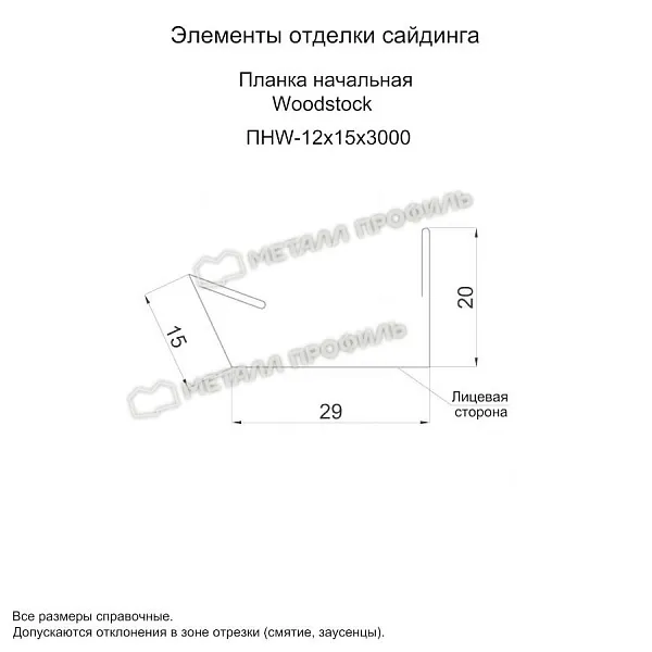 - Обладает стойкостью к УФ-излучению. - Стальная основа устойчива к деформации. Толщина оцинкованной стали с декоративно-защитным слоем 0.45 мм. - Большое количество цветовых решений. - Планка начальная Woodstock 12х15х3000 (ПЭ-01-5002-0.45) не ржавеет. - Выполняет декоративные функции.