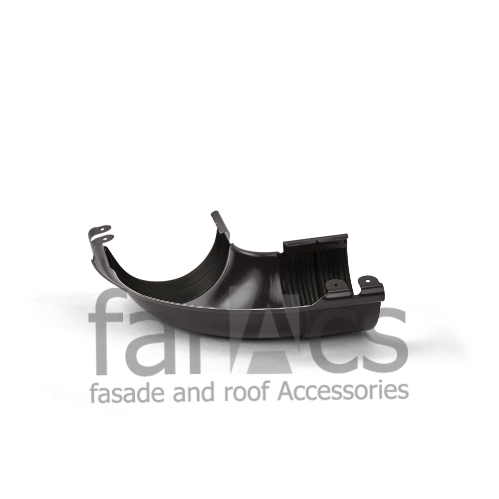 Плавный изгиб препятствует скоплению мусора, и придает особую выразительность всей системе в целом. В угол уже интегрированы уплотнители из EPDM резины и предусмотрены специальные зажимы, благодаря чему, в отличии от аналогов, не требуется приобретать дополнительные соединители желоба для стыковки.