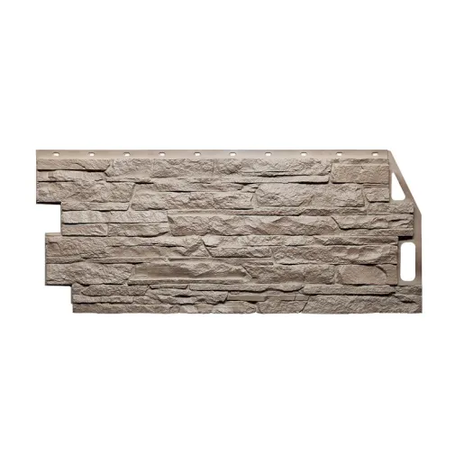 Фасадные панели FineBer Скала Песочный имитируют естественный каменный фасад, создавая эффект прочной и изысканной текстуры, характерной для скалистых областей. Это решение отличается устойчивостью к атмосферным воздействиям, обеспечивая сохранение своего первоначального внешнего вида на протяжении долгого времени.