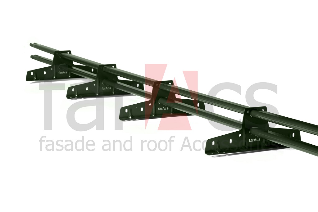 Снегозадержание является неотъемлемой частью любой кровли, выполненной из металла, а залогом долгой и успешной работы трубчатого снегозадержателя является его механическая прочность. Опоры снегозадержателя farAcs Premium выполнены из оцинкованной стали толщиной 2 мм и дополнительно снабжены ребрами жесткости, увеличивающими прочность. Трубки снегозадержателя имеют плоско-овальное сечение 45х25 мм и изготовлены из оцинкованного металла толщиной 1 мм, для удобства стыковки имеют обжим с одного торца. Опоры и трубки покрыты атмосферостойкой порошковой краской.