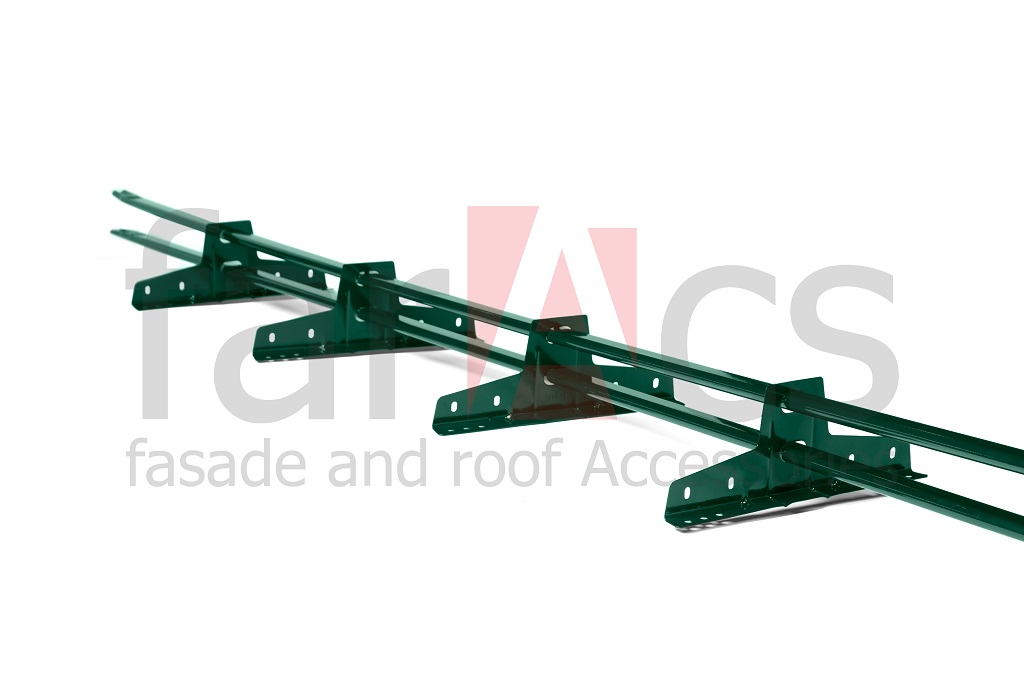Снегозадержание является неотъемлемой частью любой кровли, выполненной из металла, а залогом долгой и успешной работы трубчатого снегозадержателя является его механическая прочность. Опоры снегозадержателя farAcs выполнены из оцинкованной стали толщиной 1,2 мм и дополнительно снабжены ребрами жесткости, увеличивающими прочность. Трубки снегозадержателя имеют плоско-овальное сечение 40х20 мм и изготовлены из оцинкованного металла толщиной 1 мм, для удобства стыковки имеют обжим с одного торца. Опоры и трубки покрыты атмосферостойкой порошковой краской.
