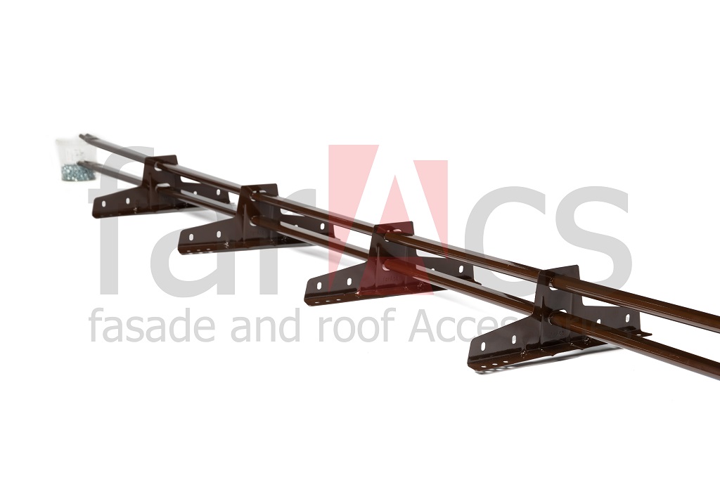 Снегозадержание является неотъемлемой частью любой кровли, выполненной из металла, а залогом долгой и успешной работы трубчатого снегозадержателя является его механическая прочность. Опоры снегозадержателя farAcs выполнены из оцинкованной стали толщиной 1,2 мм и дополнительно снабжены ребрами жесткости, увеличивающими прочность. Трубки снегозадержателя имеют плоско-овальное сечение 40х20 мм и изготовлены из оцинкованного металла толщиной 1 мм, для удобства стыковки имеют обжим с одного торца. Опоры и трубки покрыты атмосферостойкой порошковой краской.