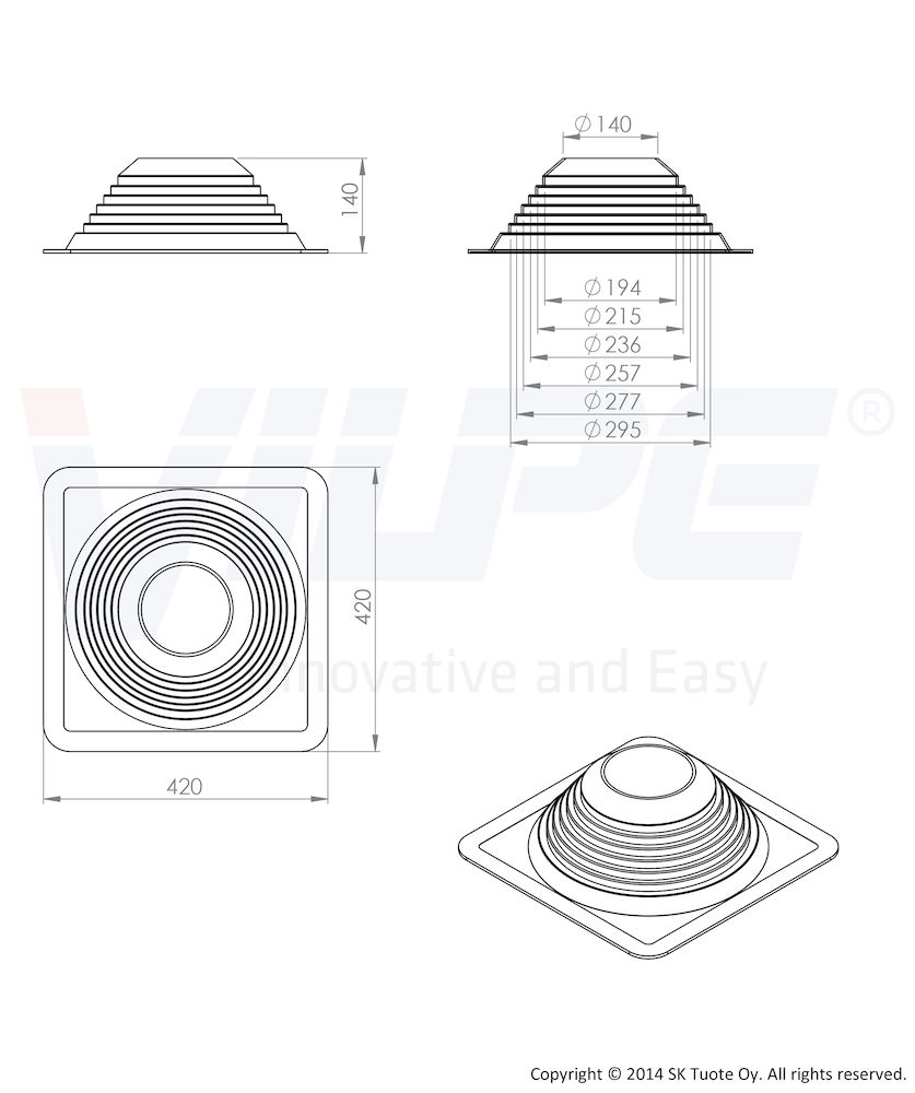 Уплотнитель Vilpe ROOFSEAL №5/8 180-330 мм – это резиновый уплотнитель для герметичной проводки труб, опор рекламных щитов, флагштоков, кабелей и т.д. через металлическую кровлю. Фланец имеет алюминиевое покрытие.