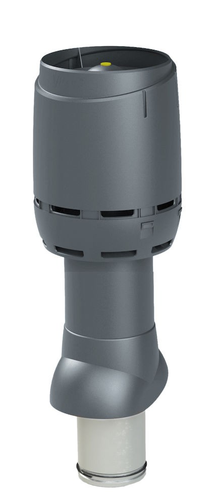Вентиляционный выход  Vilpe Flow 125/ИЗ/700 изолированный (утепленный) вентиляционный выход внутренним диаметром 125 мм. Применяется для вывода через скатную кровлю естественной вентиляции помещений, вентиляции с использованием канального вентилятора, кухонной вытяжки. Внутренняя труба изготовлена из оцинкованной стали. Длина внутренней трубы позволяет вставить ее в подводимый воздуховод на длину 300 мм. Это облегчает вертикальный монтаж в тесных чердачных помещениях и делает конструкцию более прочной. Нижний край внутренней трубы имеет резиновый уплотнитель, герметизирующий соединение трубы и воздуховода.  Вентиляционный выход укомплектован новым улучшенным колпаком Flow, который обеспечивает на до 40% меньше потери давления в системе, лучшую защиту от атмосферных осадков, строго вертикальный поток выходящего воздуха (при использовании с кухонной вытяжкой уменьшается вероятность попадания капель масла на кровельный материал), современный дизайн.  Проходной элемент продается отдельно и подбирается по типу кровельного материала.