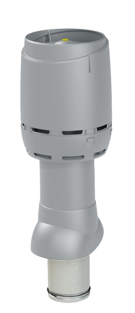 Вентиляционный выход  Vilpe Flow 125/ИЗ/700 изолированный (утепленный) вентиляционный выход внутренним диаметром 125 мм. Применяется для вывода через скатную кровлю естественной вентиляции помещений, вентиляции с использованием канального вентилятора, кухонной вытяжки. Внутренняя труба изготовлена из оцинкованной стали. Длина внутренней трубы позволяет вставить ее в подводимый воздуховод на длину 300 мм. Это облегчает вертикальный монтаж в тесных чердачных помещениях и делает конструкцию более прочной. Нижний край внутренней трубы имеет резиновый уплотнитель, герметизирующий соединение трубы и воздуховода.  Вентиляционный выход укомплектован новым улучшенным колпаком Flow, который обеспечивает на до 40% меньше потери давления в системе, лучшую защиту от атмосферных осадков, строго вертикальный поток выходящего воздуха (при использовании с кухонной вытяжкой уменьшается вероятность попадания капель масла на кровельный материал), современный дизайн.  Проходной элемент продается отдельно и подбирается по типу кровельного материала.