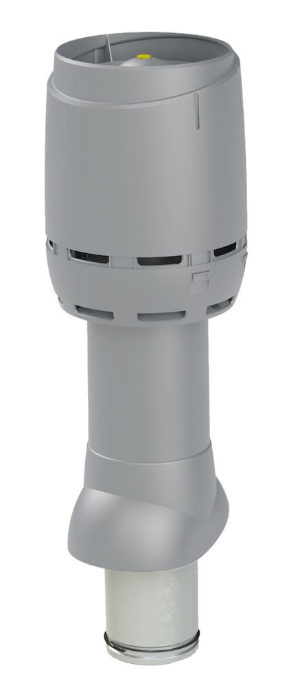 Вентиляционный выход  Vilpe Flow 125/ИЗ/700 изолированный (утепленный) вентиляционный выход увеличенной высоты внутренним диаметром 125 мм. Применяется для вывода через скатную кровлю естественной вентиляции помещений, вентиляции с использованием канального вентилятора, кухонной вытяжки. Внутренняя труба изготовлена из оцинкованной стали. Длина внутренней трубы позволяет вставить ее в подводимый воздуховод на длину 300 мм. Это облегчает вертикальный монтаж в тесных чердачных помещениях и делает конструкцию более прочной. Нижний край внутренней трубы имеет резиновый уплотнитель, герметизирующий соединение трубы и воздуховода.  Вентиляционный выход укомплектован новым улучшенным колпаком Flow, который обеспечивает на до 40% меньше потери давления в системе, лучшую защиту от атмосферных осадков, строго вертикальный поток выходящего воздуха (при использовании с кухонной вытяжкой уменьшается вероятность попадания капель масла на кровельный материал), современный дизайн.  Проходной элемент продается отдельно и подбирается по типу кровельного материала.