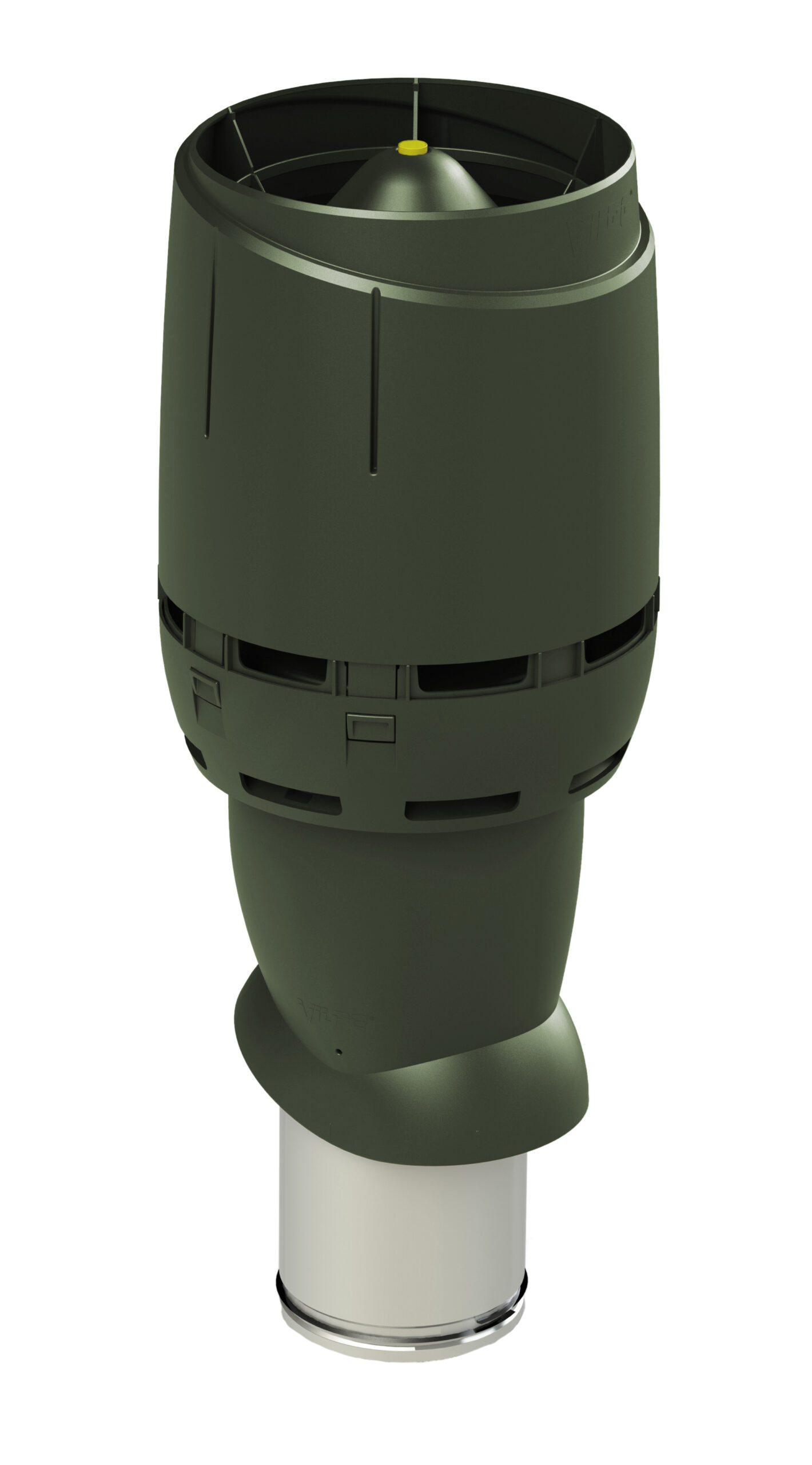 Вентиляционный выход укомплектован новым улучшенным колпаком Flow, который обеспечивает на до 40% меньше потери давления в системе, лучшую защиту от атмосферных осадков, строго вертикальный поток выходящего воздуха (при использовании с кухонной вытяжкой уменьшается вероятность попадания капель масла на кровельный материал), современный дизайн.