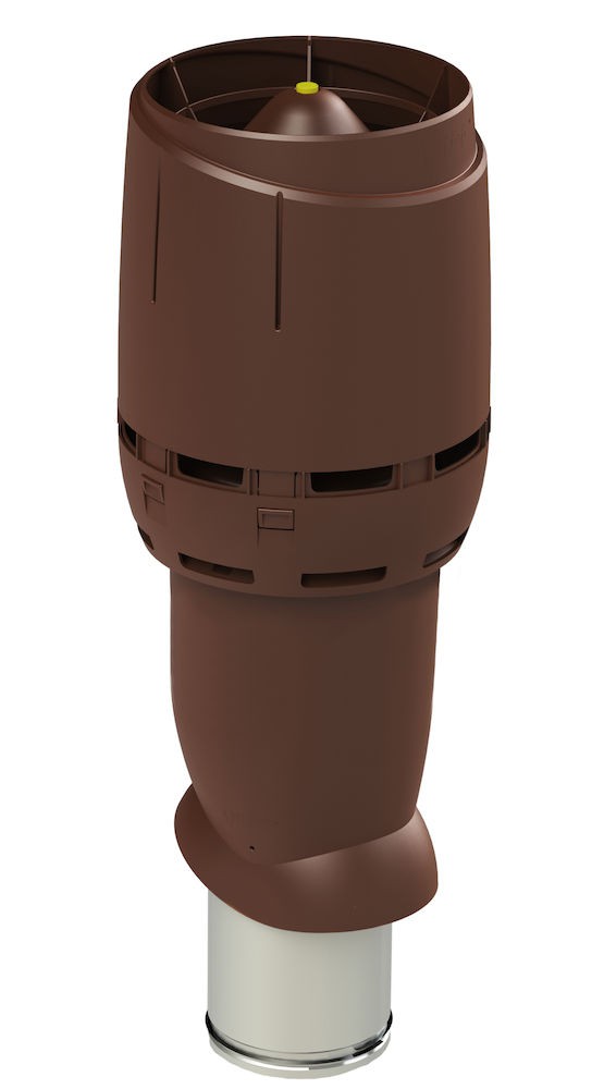 Вентиляционный выход  Vilpe Flow 160/ИЗ/700 изолированный (утепленный) вентиляционный выход увеличенной высоты внутренним диаметром 160 мм. Применяется для вывода через скатную кровлю естественной вентиляции помещений, вентиляции с использованием канального вентилятора, кухонной вытяжки. Внутренняя труба изготовлена из оцинкованной стали. Длина внутренней трубы позволяет вставить ее в подводимый воздуховод на длину 300 мм. Это облегчает вертикальный монтаж в тесных чердачных помещениях и делает конструкцию более прочной. Нижний край внутренней трубы имеет резиновый уплотнитель, герметизирующий соединение трубы и воздуховода.  Вентиляционный выход укомплектован новым улучшенным колпаком Flow, который обеспечивает на до 40% меньше потери давления в системе, лучшую защиту от атмосферных осадков, строго вертикальный поток выходящего воздуха (при использовании с кухонной вытяжкой уменьшается вероятность попадания капель масла на кровельный материал), современный дизайн.  Проходной элемент продается отдельно и подбирается по типу кровельного материала.