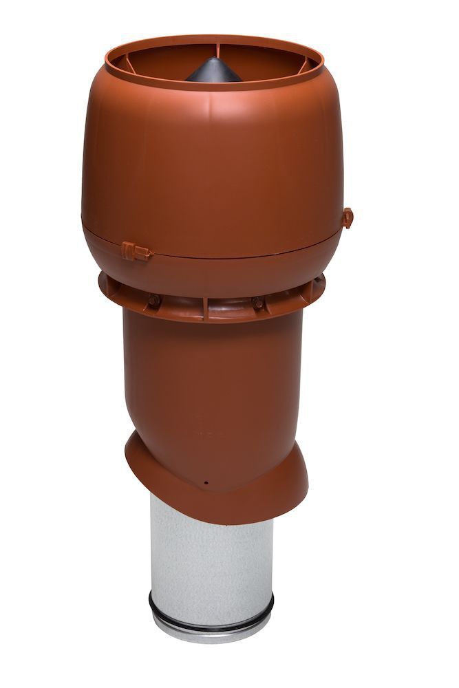XL -160/ИЗ/500 вентиляционный выход для вывода на крышу трубы кухонной вытяжки, вытяжной вентиляции с канальным вентилятором или рекуператором. XL -160/ИЗ/500 вентиляционный выход имеет трубу высотой 500 мм. Труба теплоизолирована для предотвращения образования конденсата в трубе. Внутренняя труба изготовлена из оцинкованной стали. Длина внутренней трубы позволяет вставить ее в подводимый воздуховод на длину 300 мм. Это облегчает вертикальный монтаж в тесных чердачных помещениях и делает конструкцию более прочной. Нижний край внутренней трубы имеет резиновый уплотнитель, герметизирующий соединение трубы и воздуховода. Колпак вентиляционного выхода защищает от попадания осадков и грязи в канал. XL -проходной элемент для монтажа подбирается по типу кровельного материала.