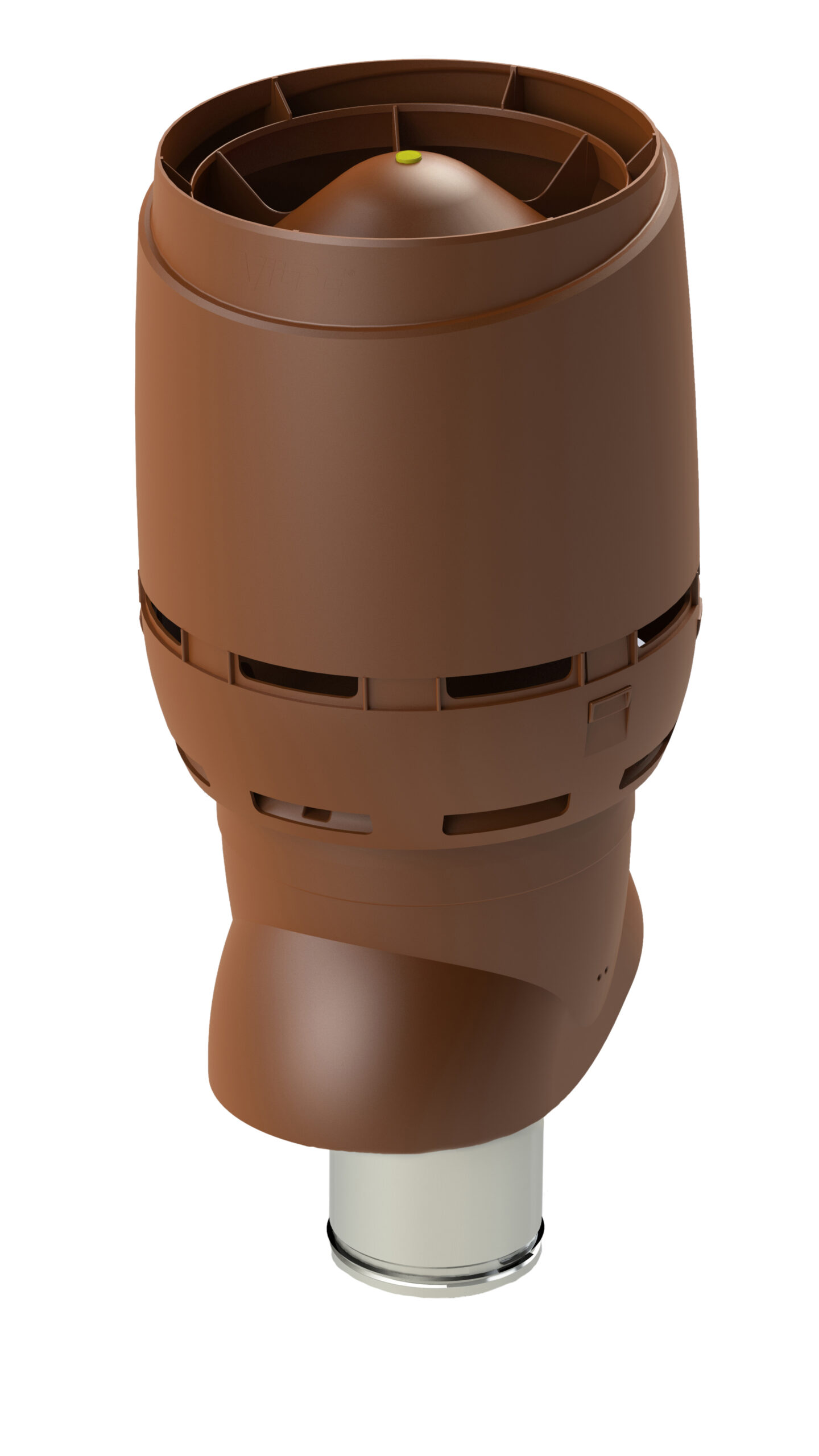 Вентиляционный выход  Vilpe Flow XL 160/ИЗ/500 изолированный (утепленный) вентиляционный выход внутренним диаметром 160 мм. Применяется для вывода через скатную кровлю естественной вентиляции помещений, вентиляции с использованием канального вентилятора, кухонной вытяжки. Внутренняя труба изготовлена из оцинкованной стали. Длина внутренней трубы позволяет вставить ее в подводимый воздуховод на длину 300 мм. Это облегчает вертикальный монтаж в тесных чердачных помещениях и делает конструкцию более прочной. Нижний край внутренней трубы имеет резиновый уплотнитель, герметизирующий соединение трубы и воздуховода.  Вентиляционный выход укомплектован новым улучшенным колпаком Flow, который обеспечивает на до 40% меньше потери давления в системе, лучшую защиту от атмосферных осадков, строго вертикальный поток выходящего воздуха (при использовании с кухонной вытяжкой уменьшается вероятность попадания капель масла на кровельный материал), современный дизайн.  Проходной элемент XL продается отдельно и подбирается по типу кровельного материала.